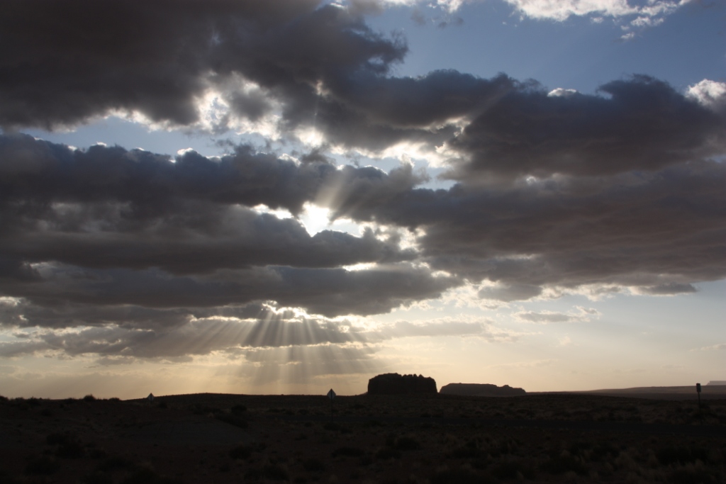 watching the sun peek behind the clouds and cast its rays on the rocks,